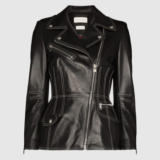 Alexander McQueen Contrast Stitching Lambskin Biker Fashion jacket