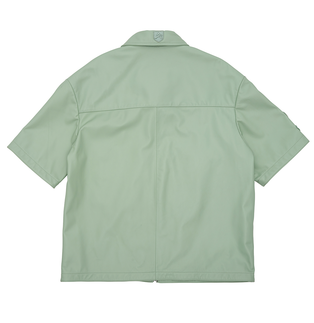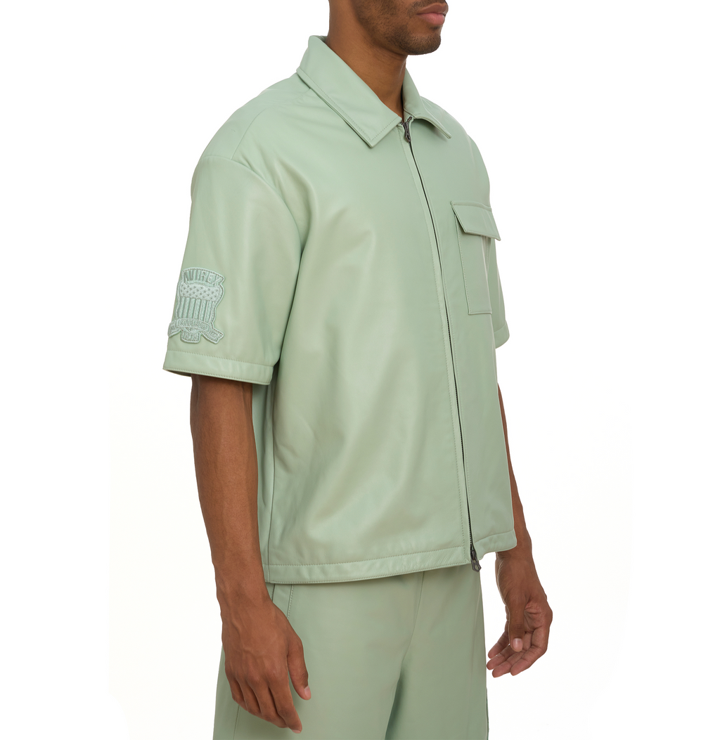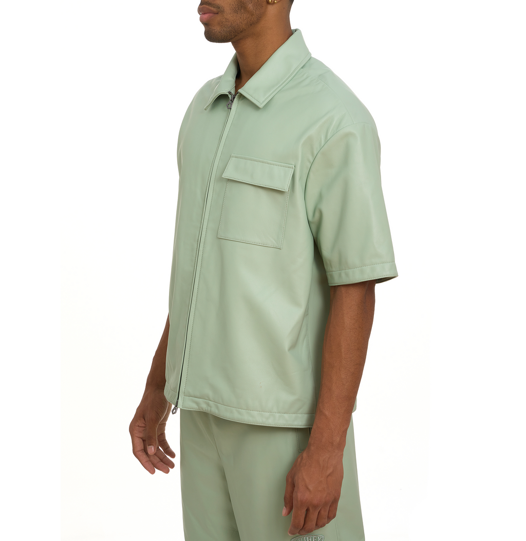 Short sleeve shirt jacket in soft nappa leather.