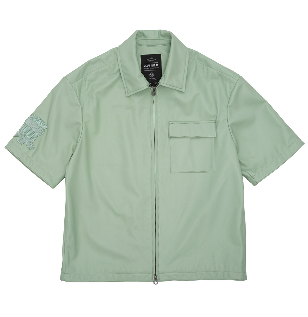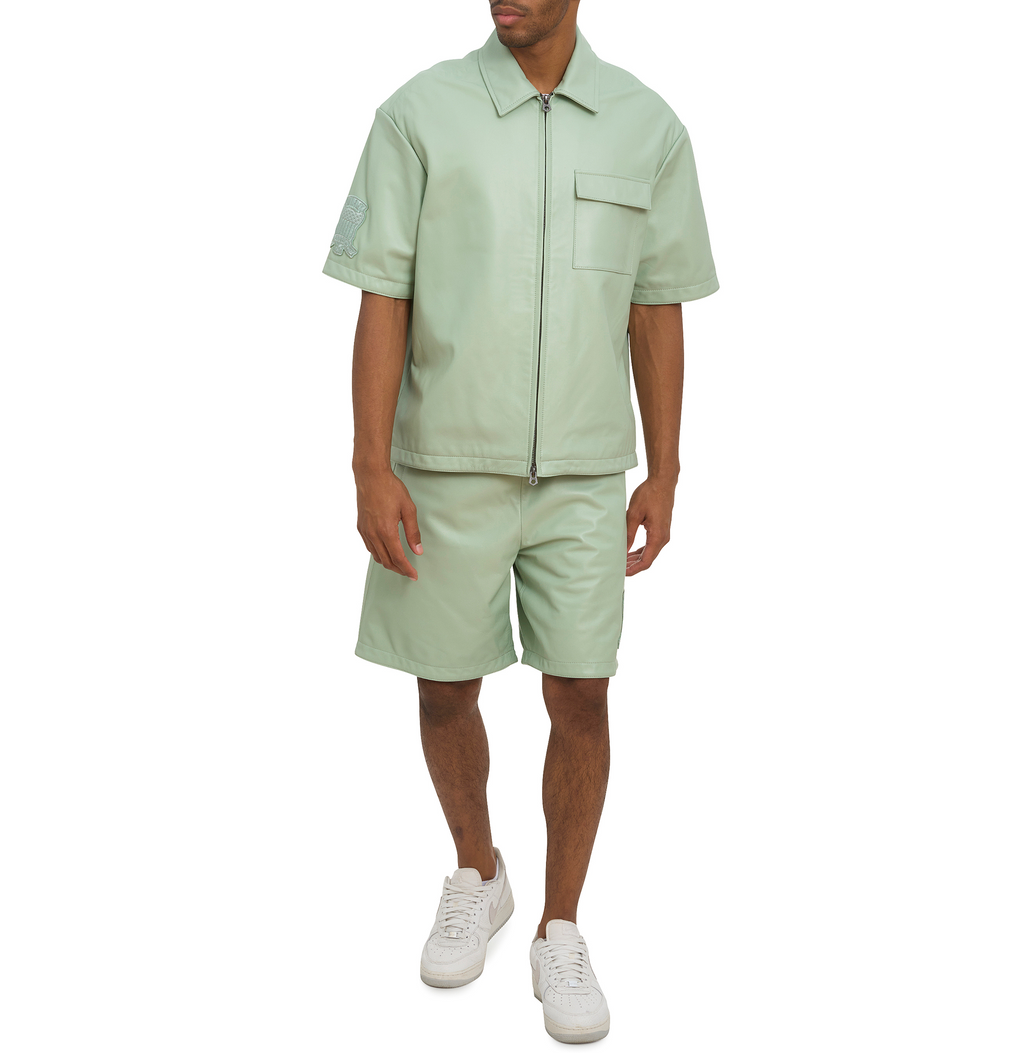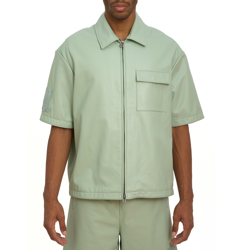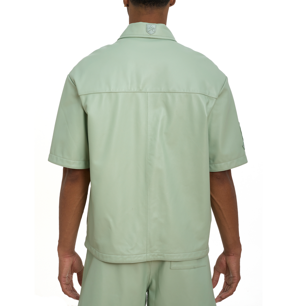 Short sleeve shirt jacket in soft nappa leather.