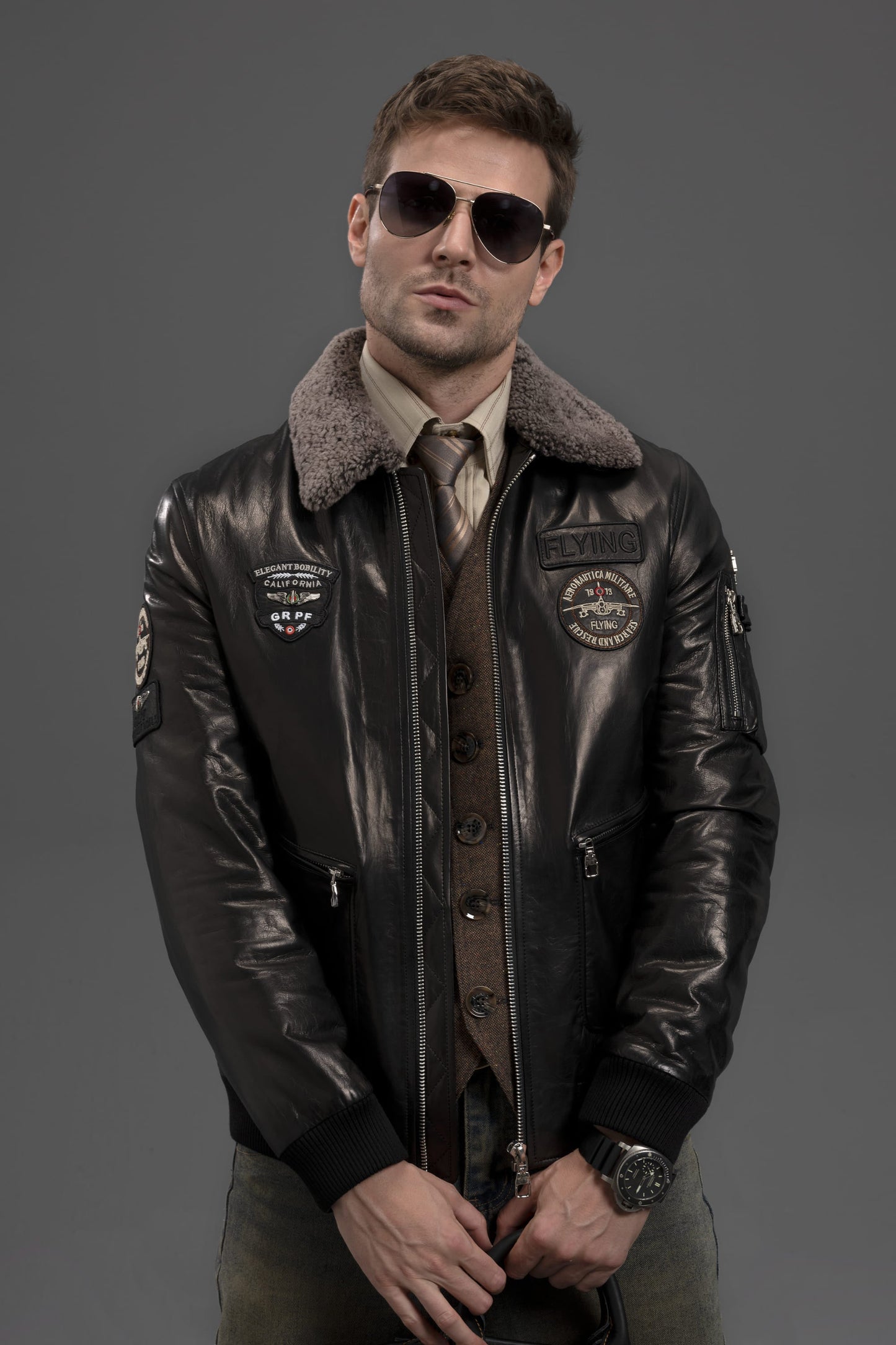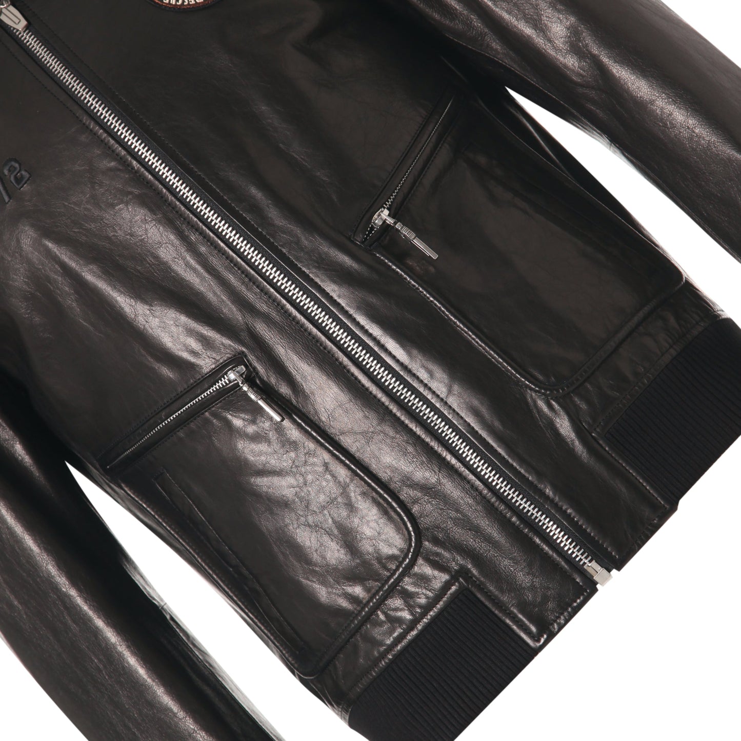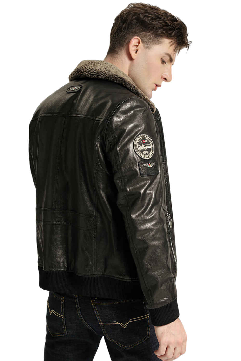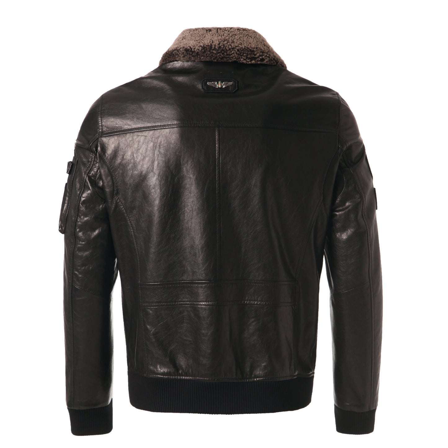 Buy Black Lamb Fur Collar Goatskin Bomber Jacket