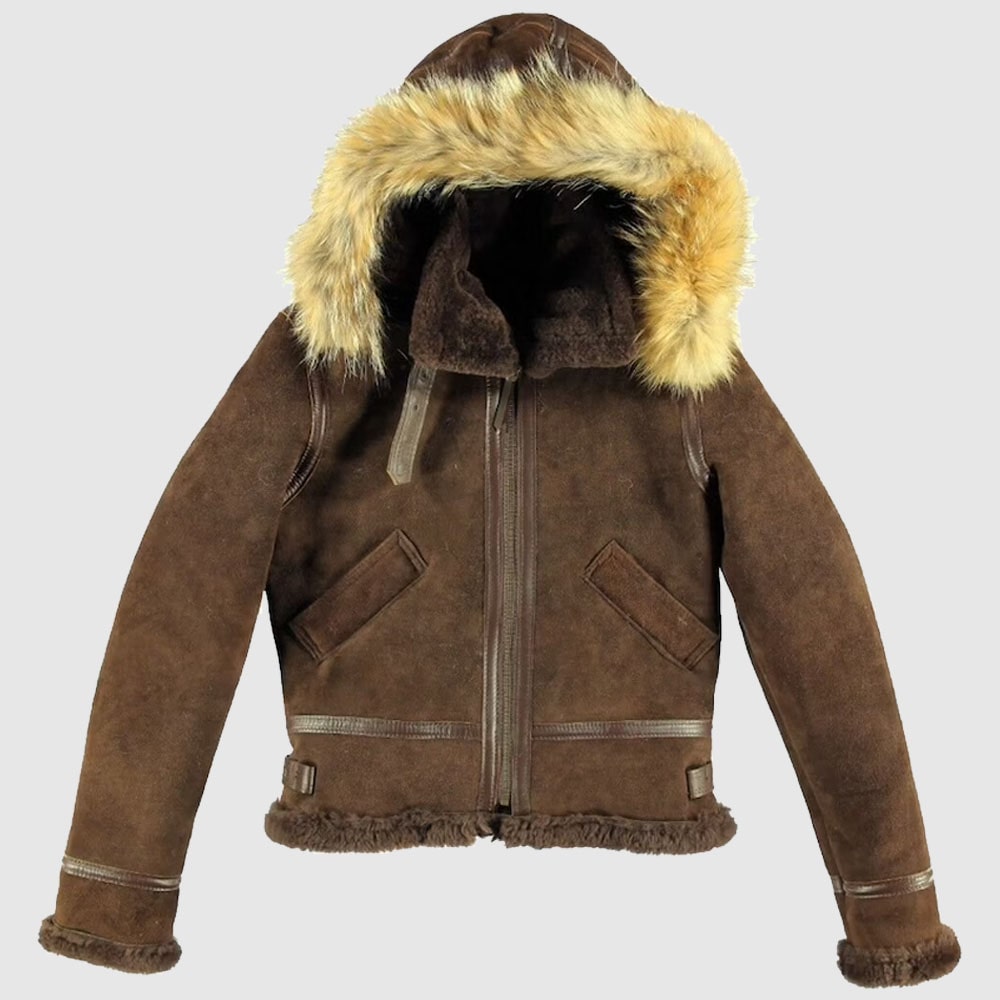 Women B3 Bomber Brown Aviator Hooded Vintage Real Shearling Fur Leather Jacket